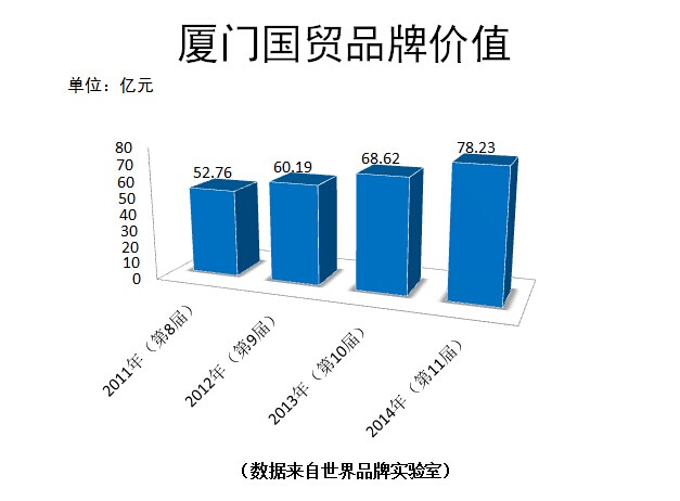 6月25日,世界品牌實(shí)驗(yàn)室在北京召開世界品牌大會(huì),發(fā)布2014(第十一屆)《中國500最具價(jià)值品牌》排行榜。在這份基于財(cái)務(wù)分析、消費(fèi)者行為分析和品牌強(qiáng)度分析而獲得的中國品牌國家隊(duì)陣容中,廈門國貿(mào)集團(tuán)股份有限公司第4次上榜,名列年度榜單第284位,品牌價(jià)值78.23億元,較上年度增加了9.61億元。