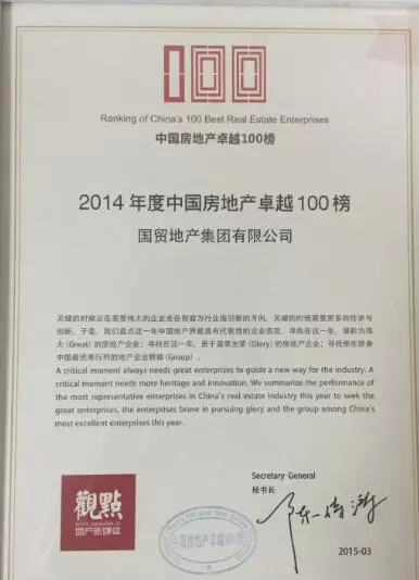3月26日,2015觀點(diǎn)年度論壇盛大發(fā)布2014年度中國房地產(chǎn)卓越100榜,國貿(mào)地產(chǎn)集團(tuán)成功登榜!