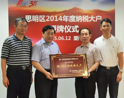 6月12日,思明區(qū)政協(xié)主席陳炳良等區(qū)領(lǐng)導(dǎo)蒞臨廈門國(guó)貿(mào)集團(tuán),為公司榮獲思明區(qū)2014年度超1億元納稅大戶授牌。陳金銘總裁等公司領(lǐng)導(dǎo)參加了授牌儀式。