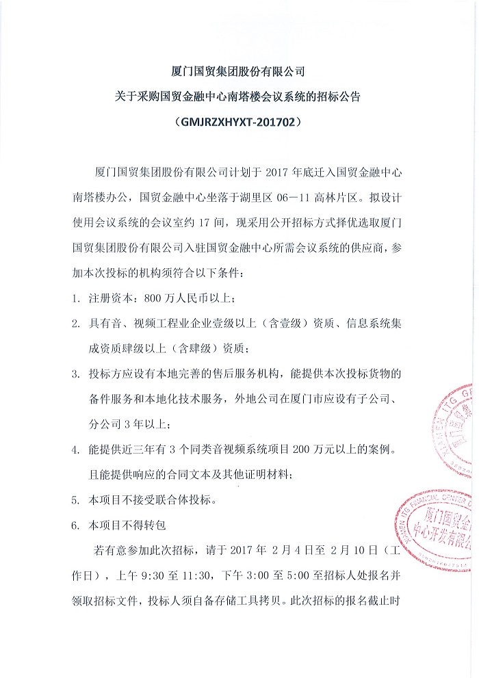 國(guó)貿(mào)金融中心會(huì)議系統(tǒng)的招標(biāo)公告