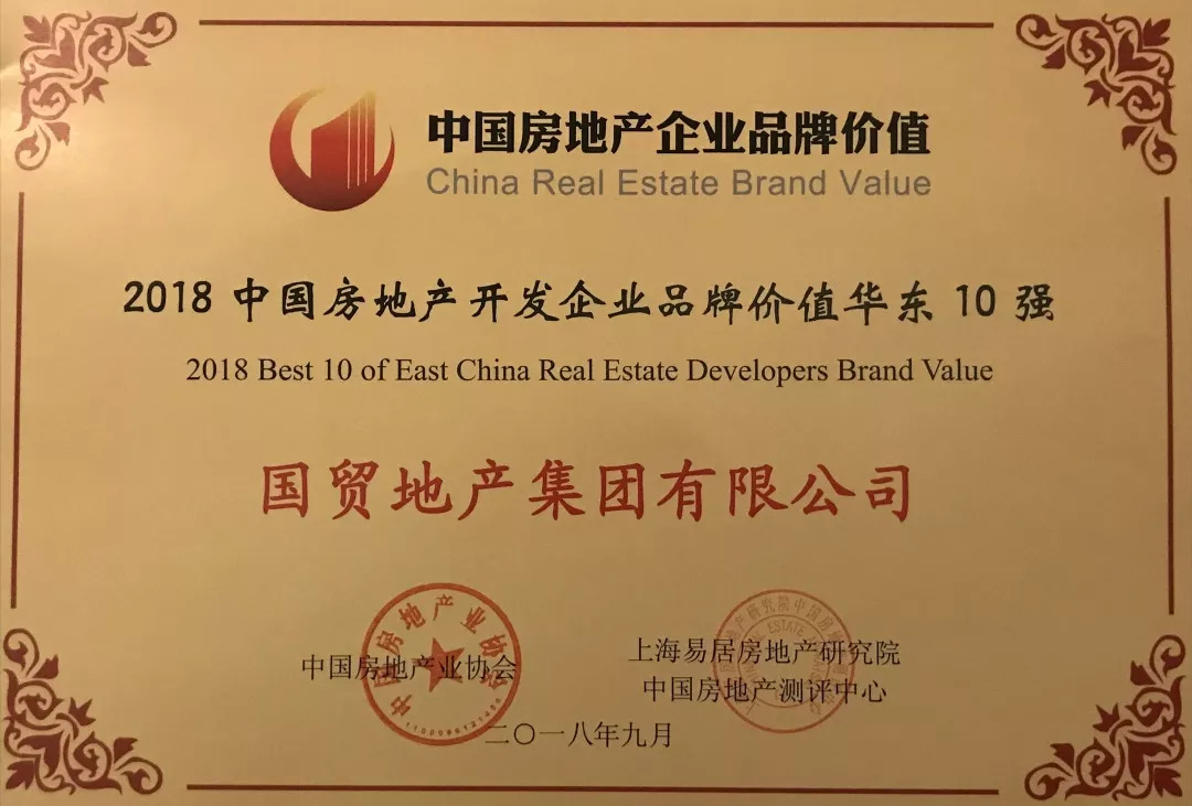 喜報(bào)丨國貿(mào)地產(chǎn)榮獲2018中國房地產(chǎn)品牌價(jià)值測評華東10強(qiáng)