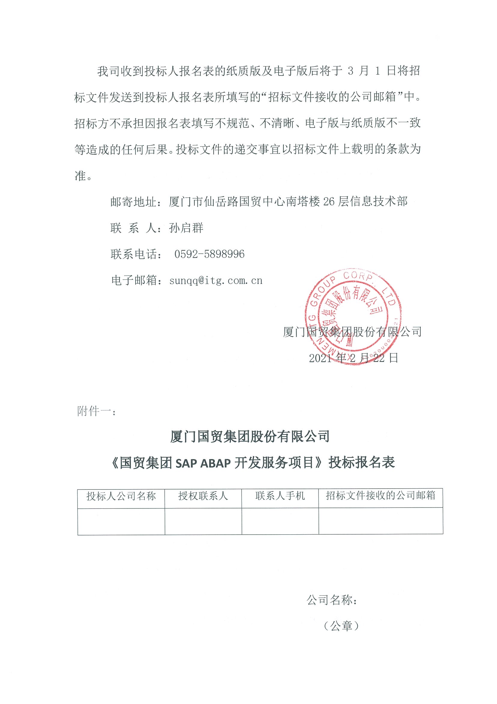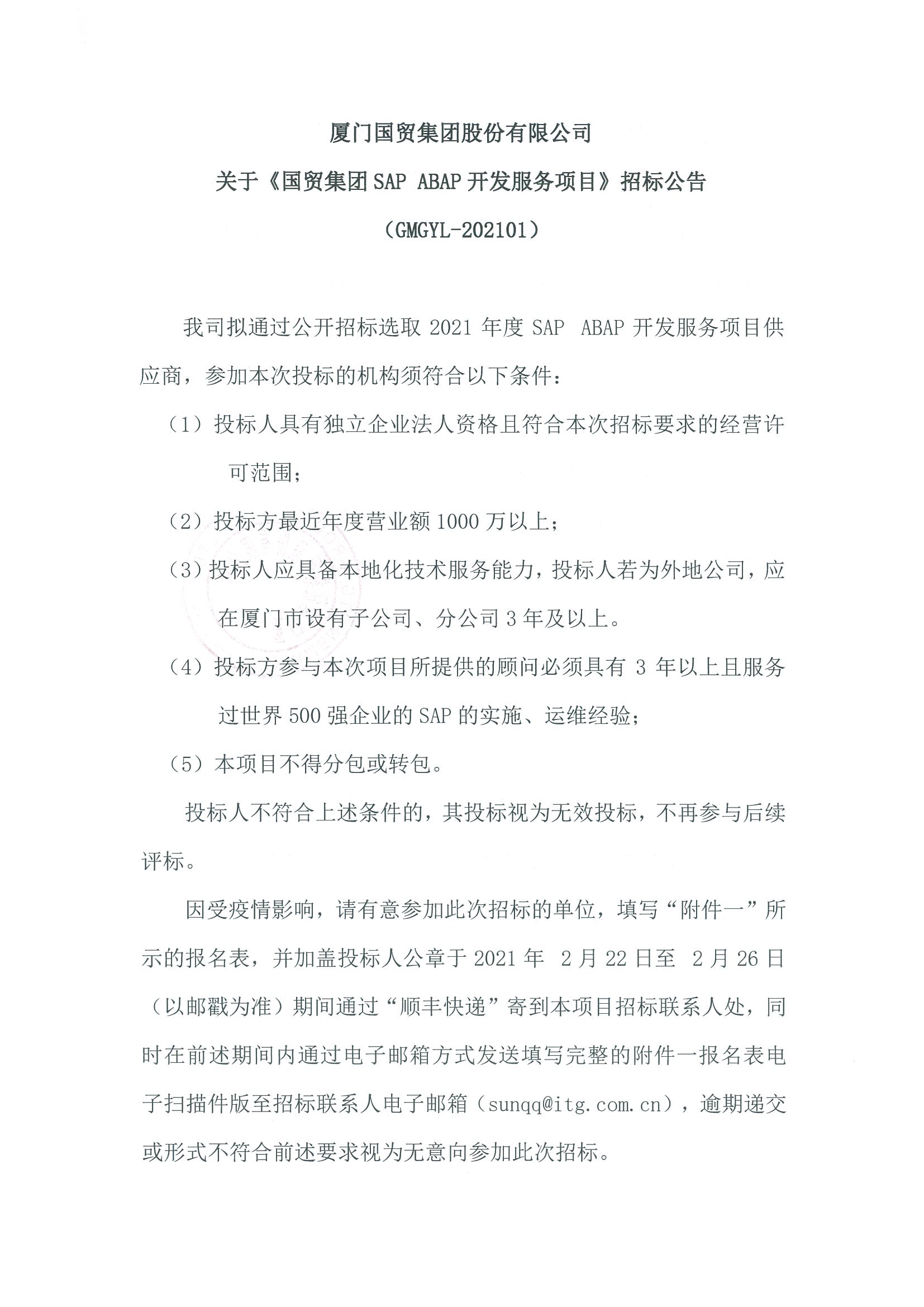 關(guān)于《國(guó)貿(mào)集團(tuán)SAP ABAP開(kāi)發(fā)服務(wù)項(xiàng)目》招標(biāo)公告