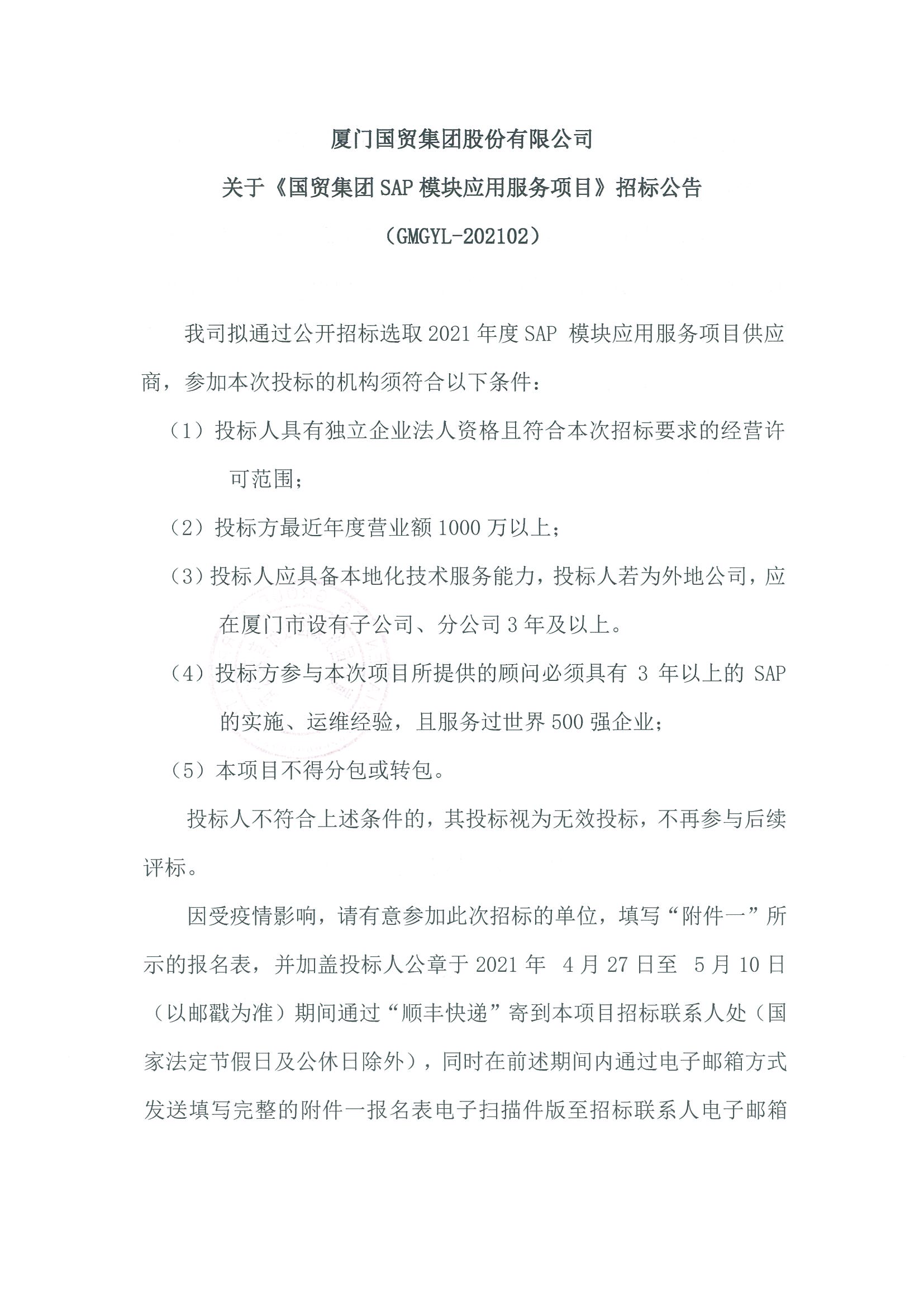 關(guān)于《國(guó)貿(mào)集團(tuán)SAP模塊應(yīng)用服務(wù)項(xiàng)目》招標(biāo)公告