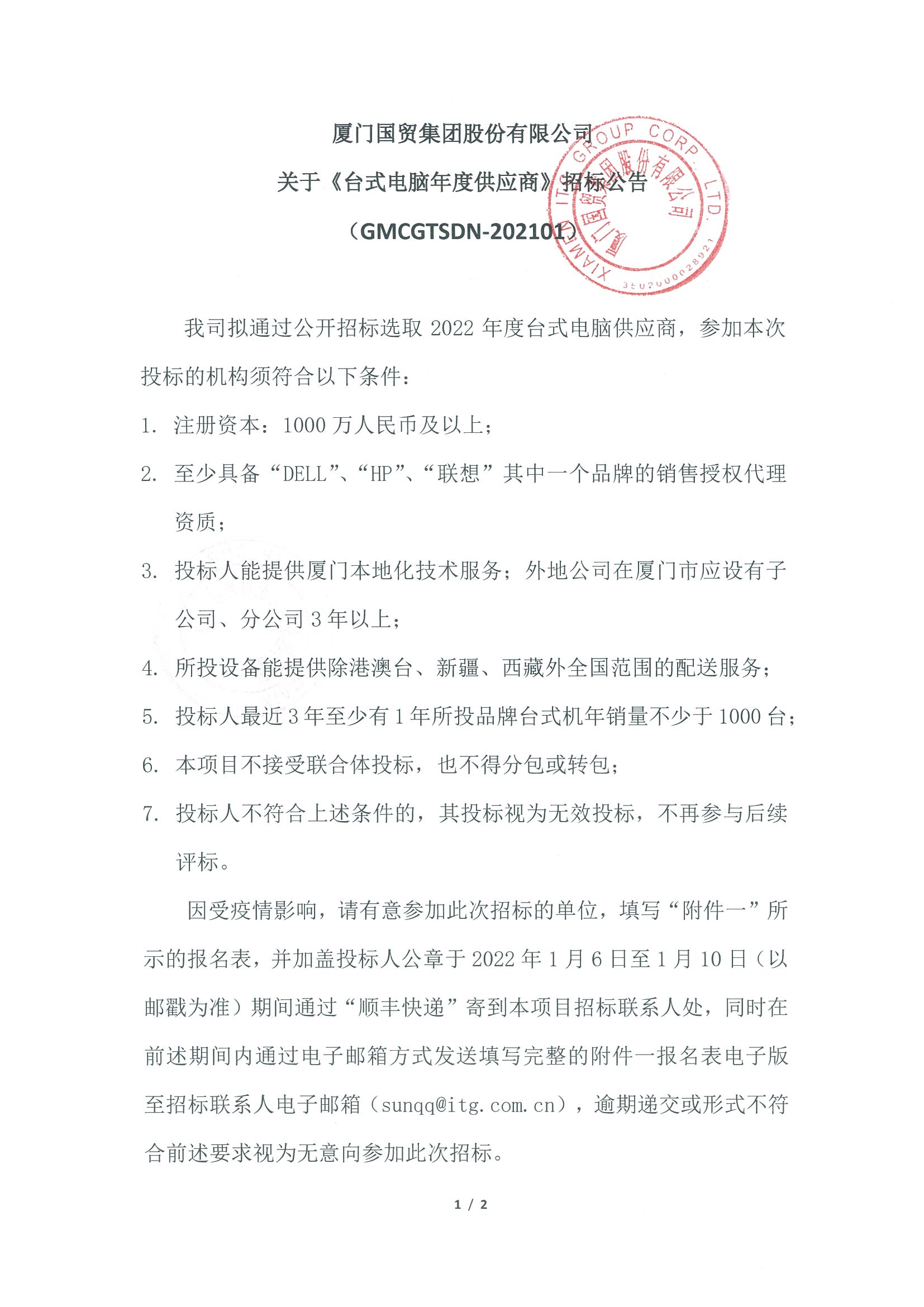 《臺(tái)式電腦年度供應(yīng)商》 項(xiàng)目采購(gòu)招標(biāo)公告