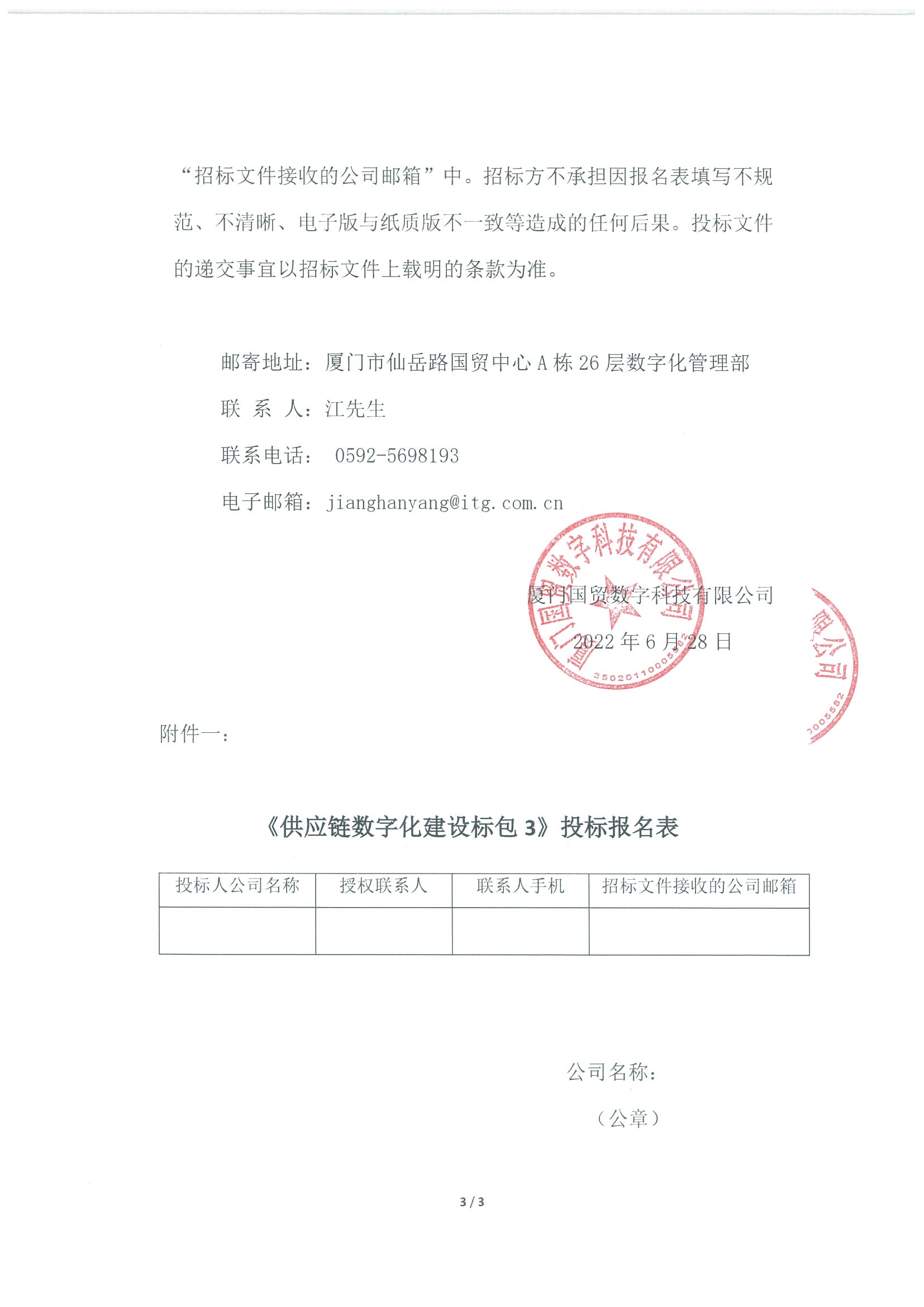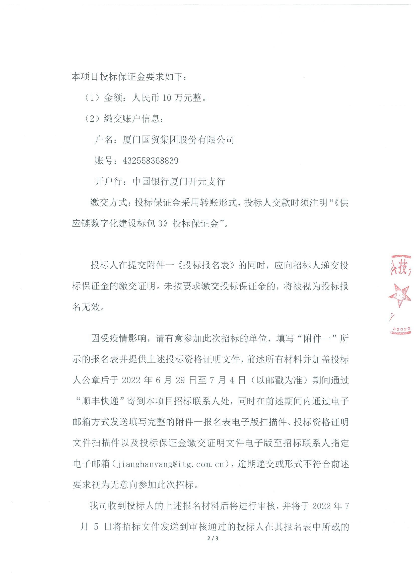 廈門國貿(mào)數(shù)字科技有限公司關(guān)于《供應(yīng)鏈數(shù)字化建設(shè)標(biāo)包3》的招標(biāo)公告