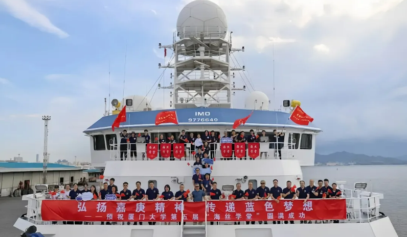 作為2024廈門大學“海絲學堂”項目支持單位之一,國貿股份也一同“海上開學”,再度為“嘉庚”號及“海絲學堂”項目提供船舶管理服務保障與支持。