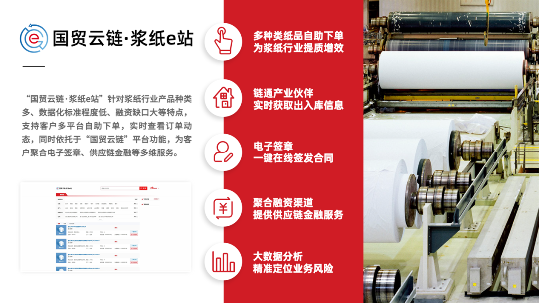 在數(shù)字中國建設(shè)峰會第三屆國有企業(yè)數(shù)字化轉(zhuǎn)型論壇上,國貿(mào)股份報送的“國貿(mào)云鏈·漿紙e站”獲評產(chǎn)業(yè)協(xié)同類三等獎。