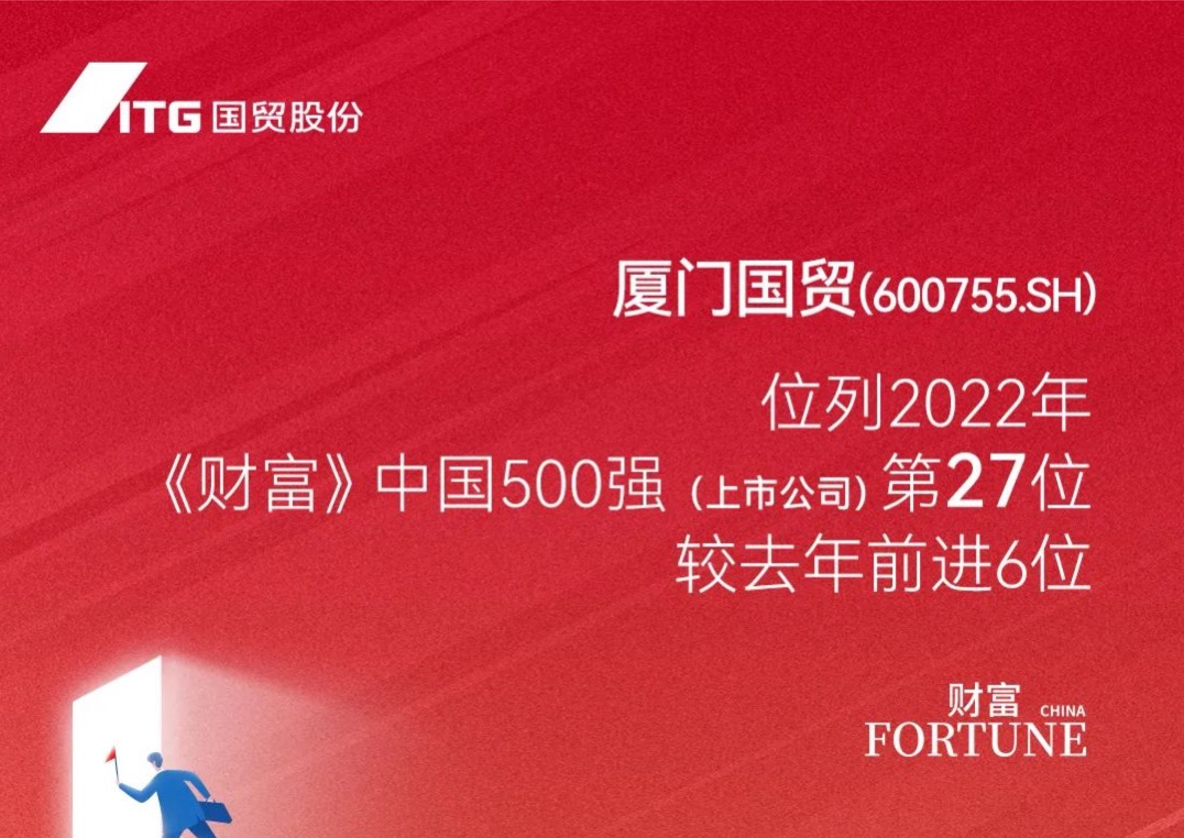 第27位!《財富》中國500強(上市公司)榜單揭曉,廈門國貿再創(chuàng)新高。