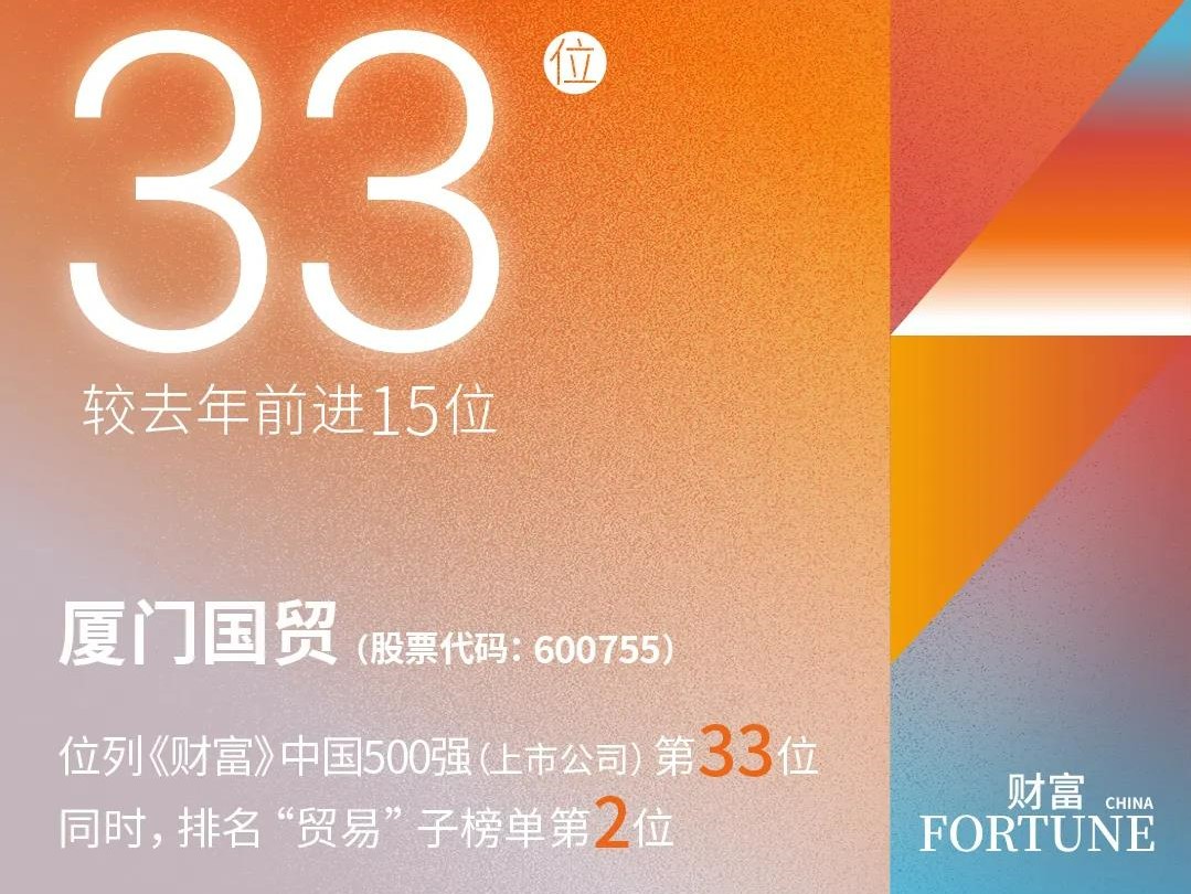 前進(jìn)15位!廈門國貿(mào)位列《財富》中國500強(qiáng)(上市公司)第33位!