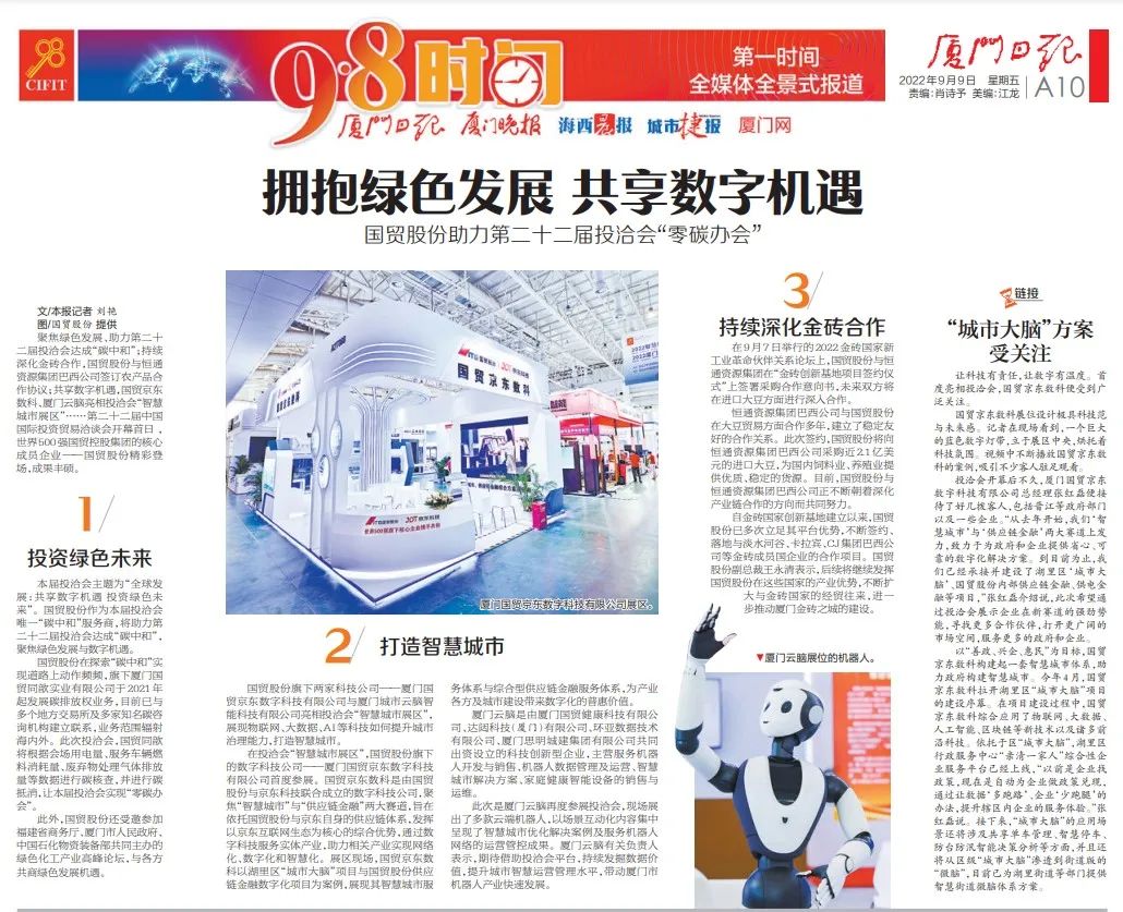 廈門日報(bào) | 國貿(mào)股份助力第二十二屆投洽會“零碳辦會”。