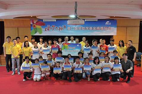 多年來,廈門國貿(mào)在持續(xù)快速健康發(fā)展的同時,始終不忘履行企業(yè)社會責(zé)任, 常年開展“愛與夢飛翔”社會公益活動,堅持回饋社會、關(guān)愛貧困兒童。2012年,公司與廈門市特殊教育學(xué)校共建,除設(shè)立“愛與夢飛翔”助學(xué)基金外,將企業(yè)文化與共建活動相結(jié)合,公司職工俱樂部與特教學(xué)校學(xué)生一起活動,幫助學(xué)生接觸社會,增強(qiáng)自信,快樂成長。